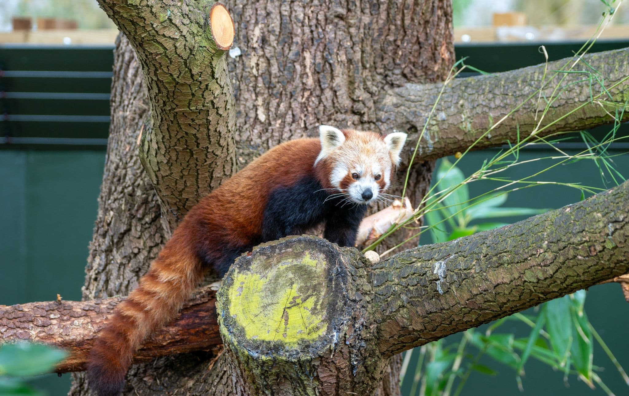 The red panda habitat at Bristol Zoo Project is dominated by the large cedar and conifer trees, which red pandas love to climb!